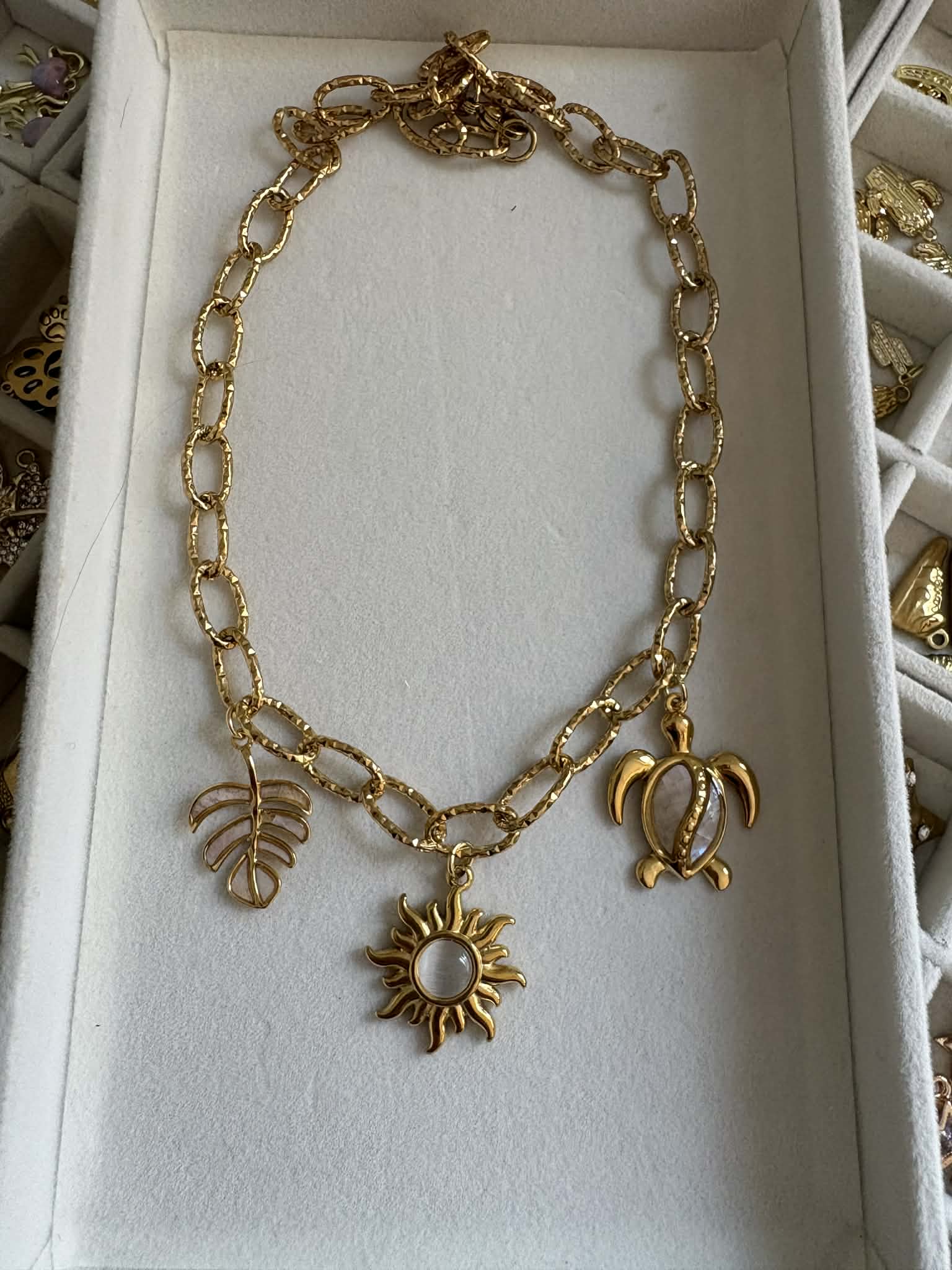 Coco Luna – Summer Sun Charm Necklace, a radiant piece inspired by golden days and sun-soaked moments. Designed to capture the warmth and glow of summer, this necklace brings a bright, uplifting energy to your everyday style.