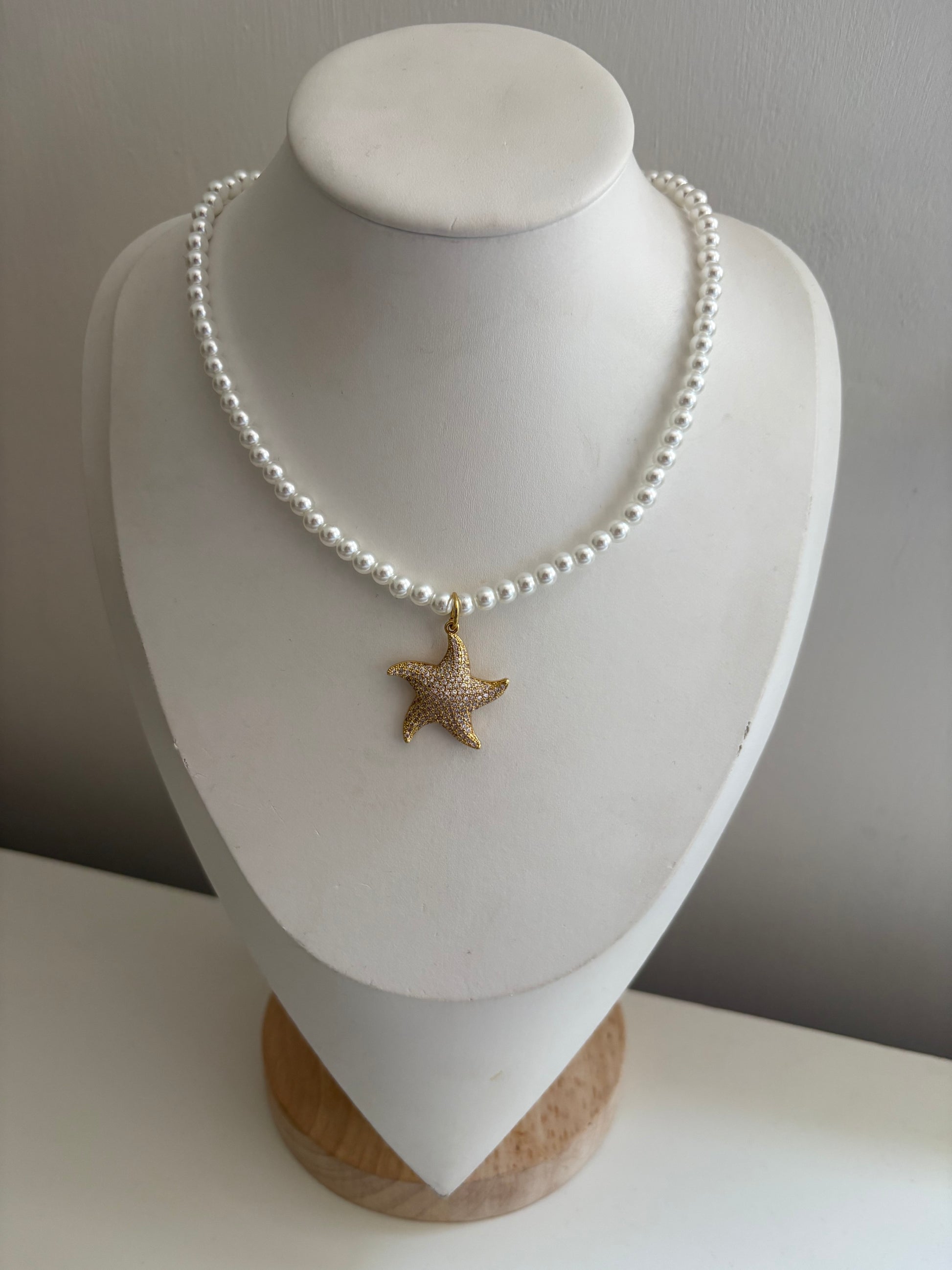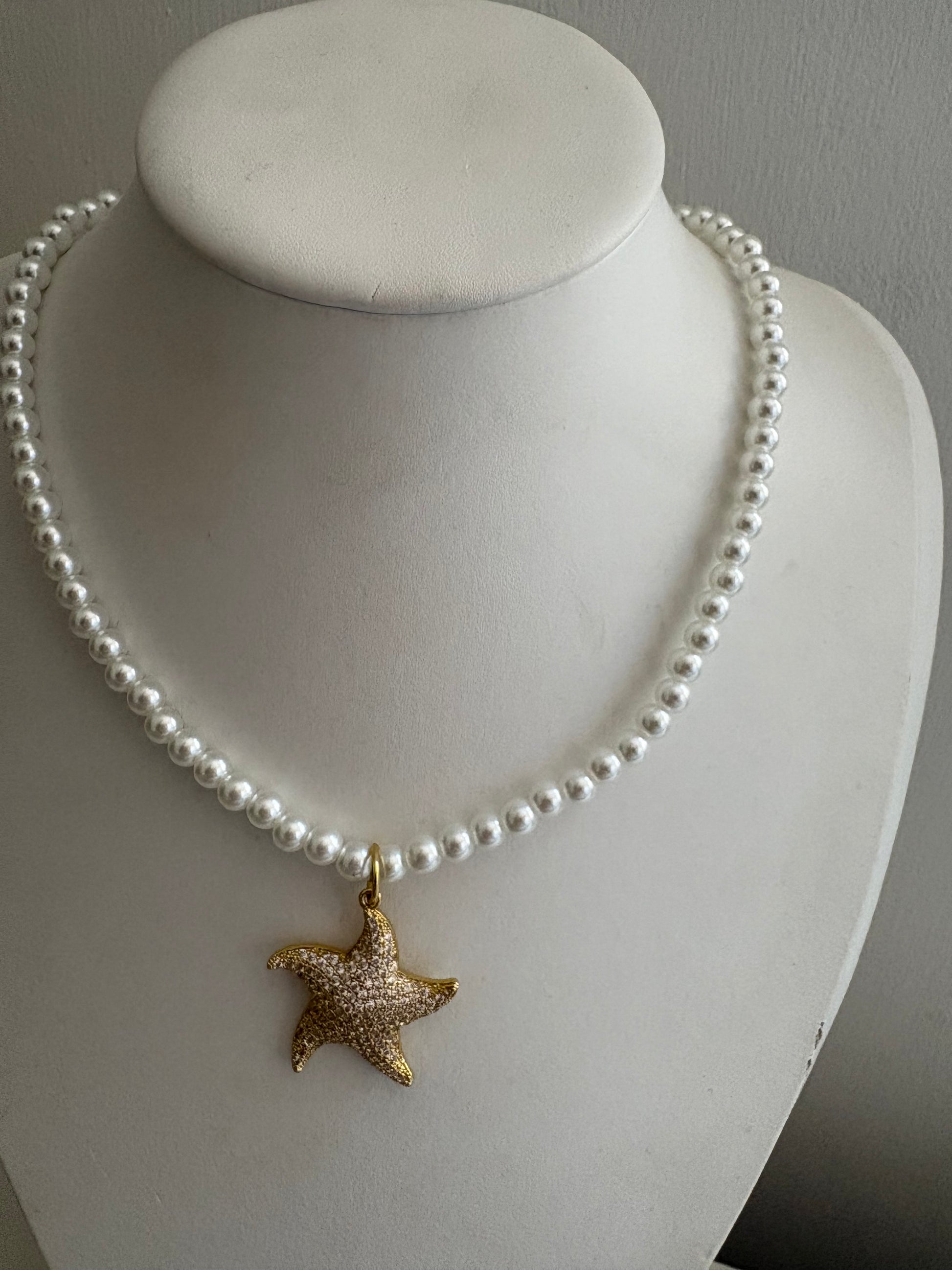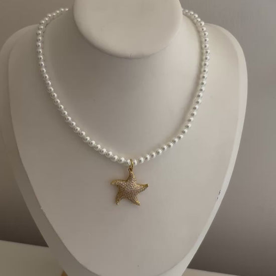 Diamante Star Fish & Pearl Necklace