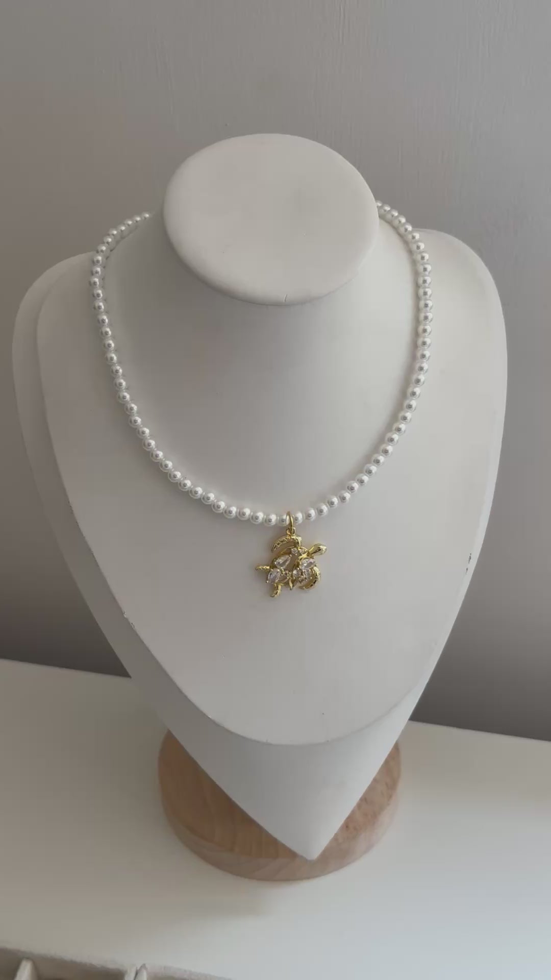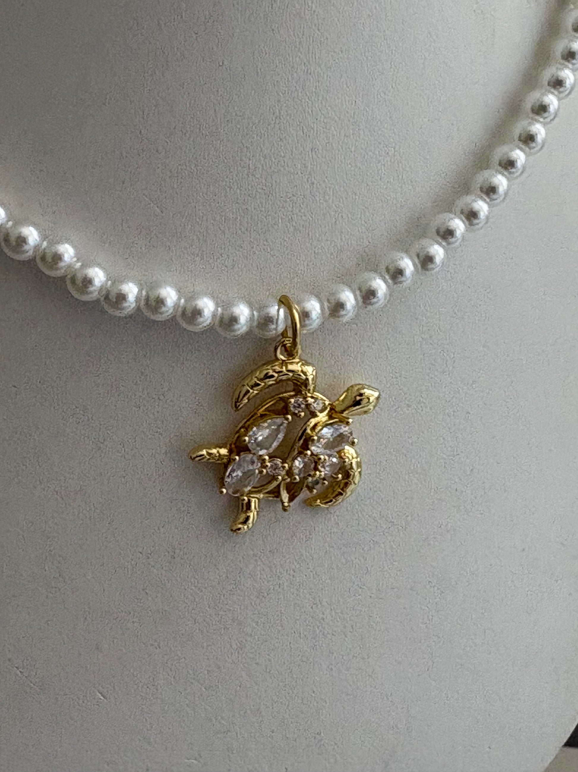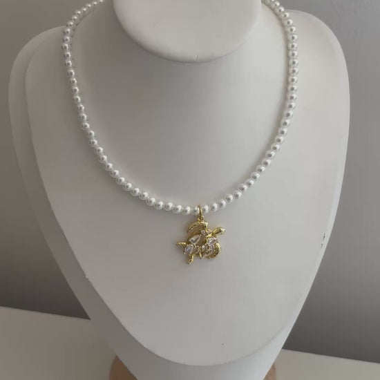 Diamante Turtle & Pearl Necklace
