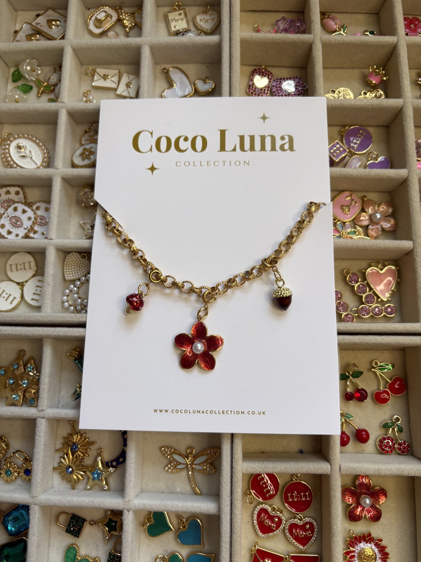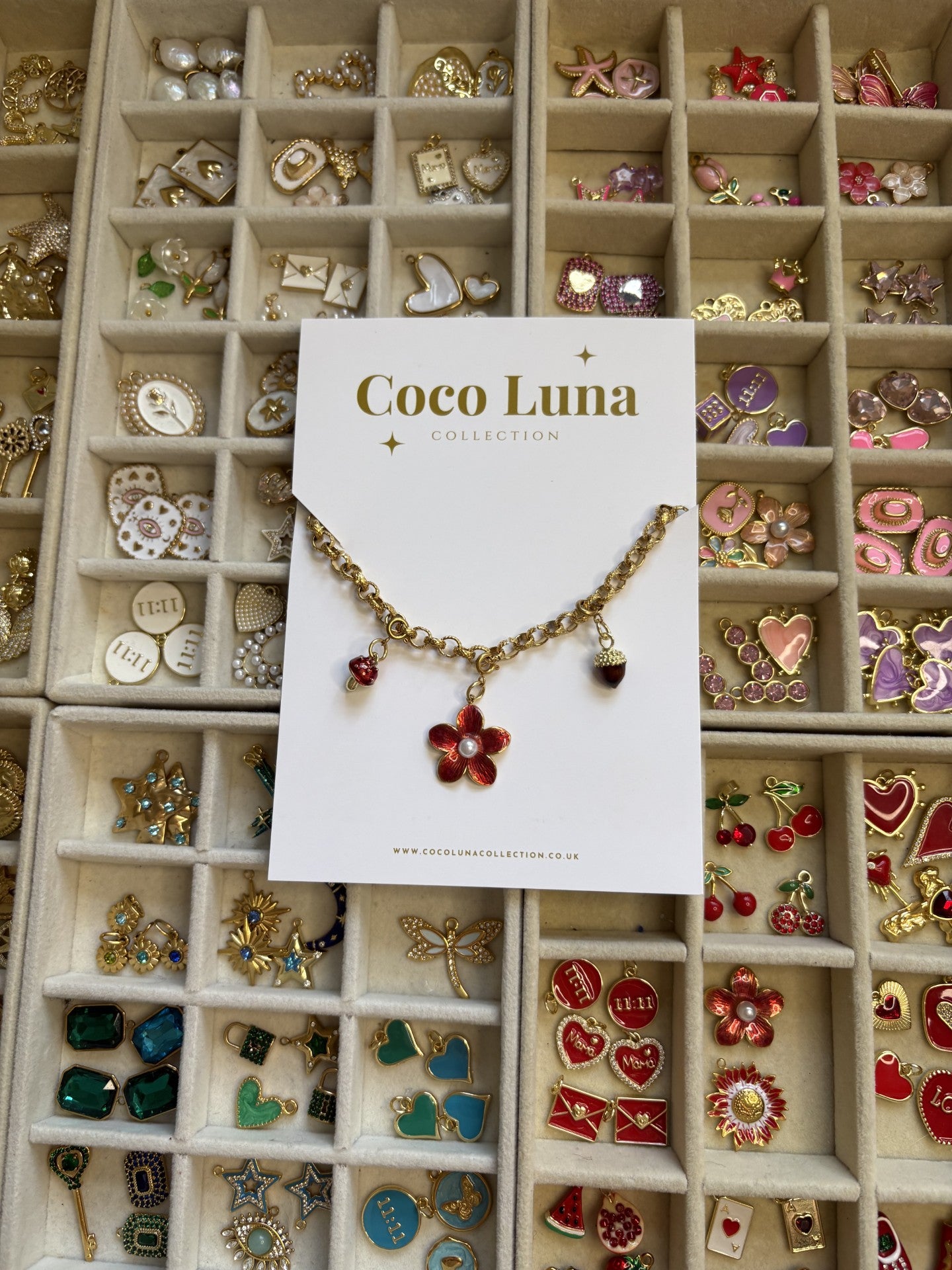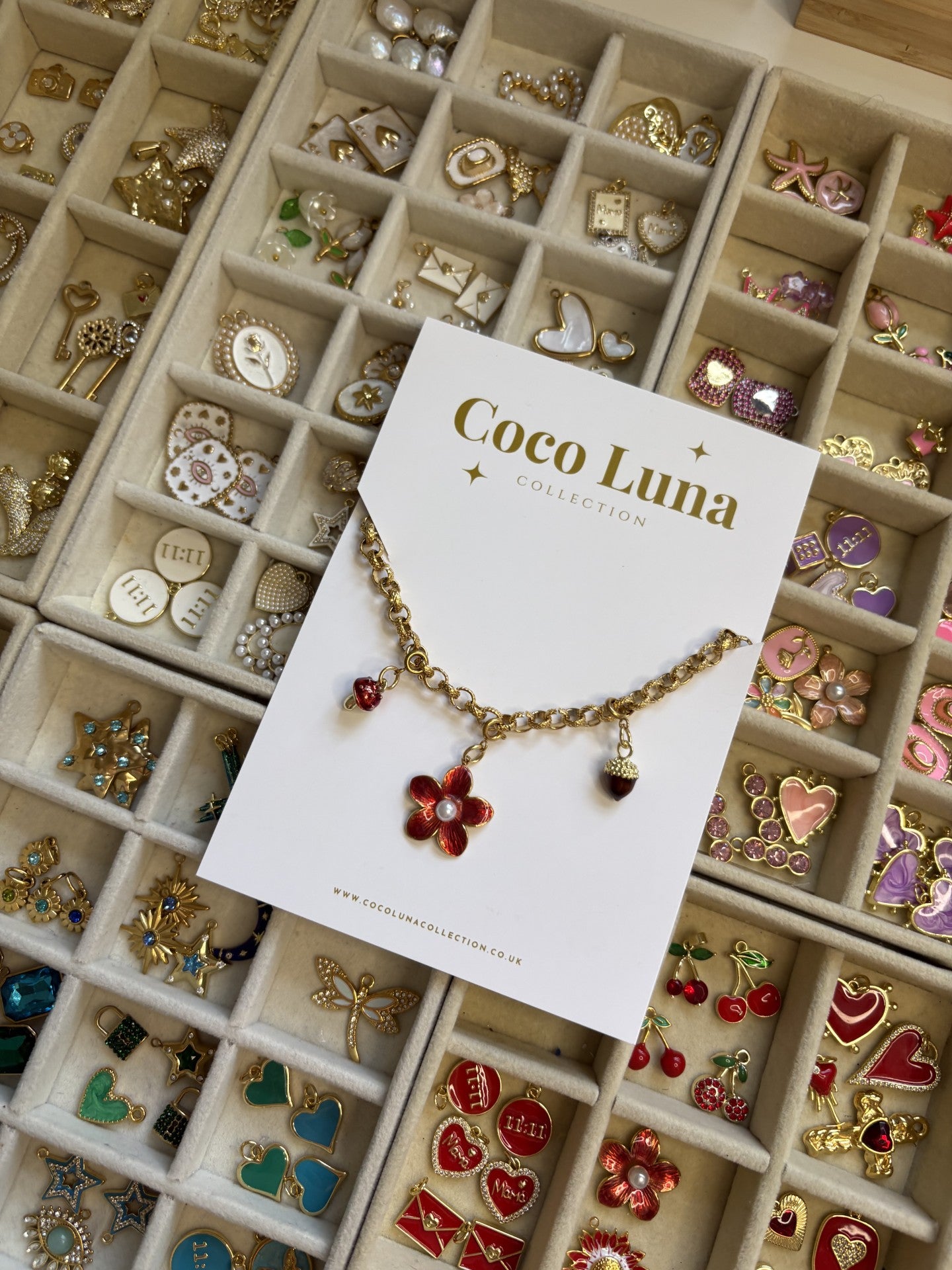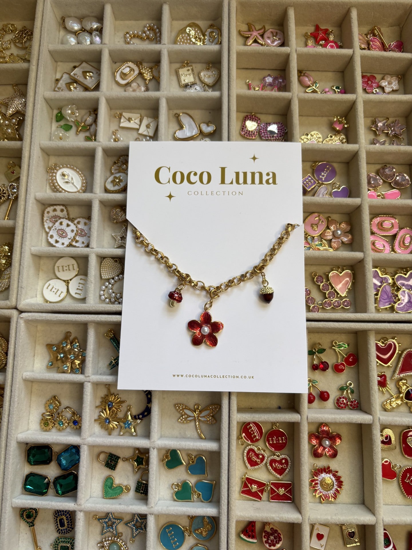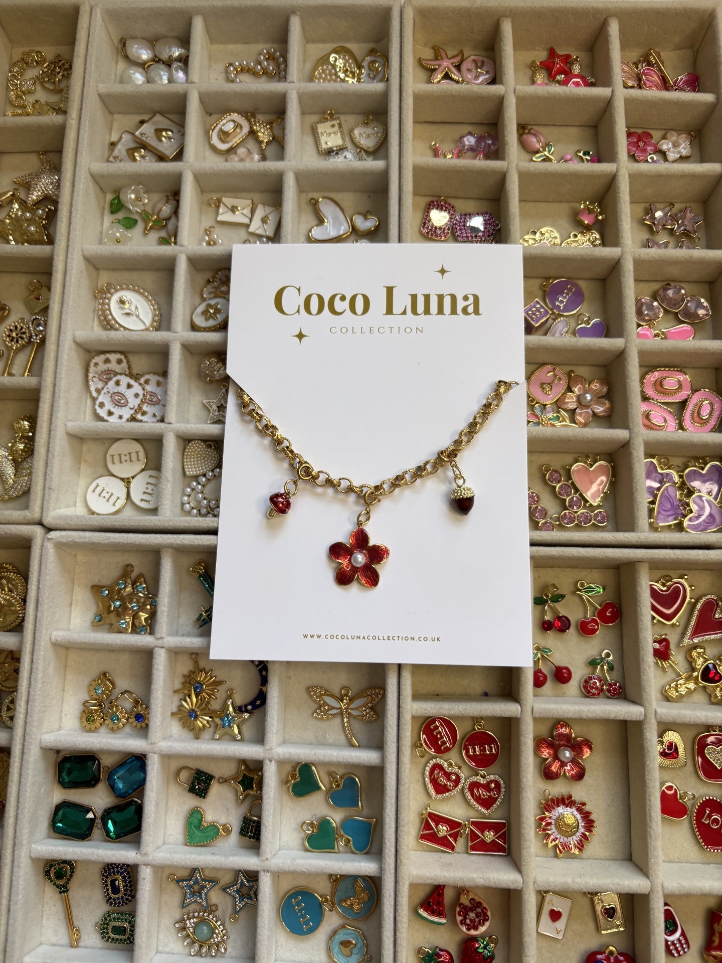 A collection of charm necklaces and bracelets ready to wear. These exclusive designs make choosing charms easy, especially when faced with over 500 options.